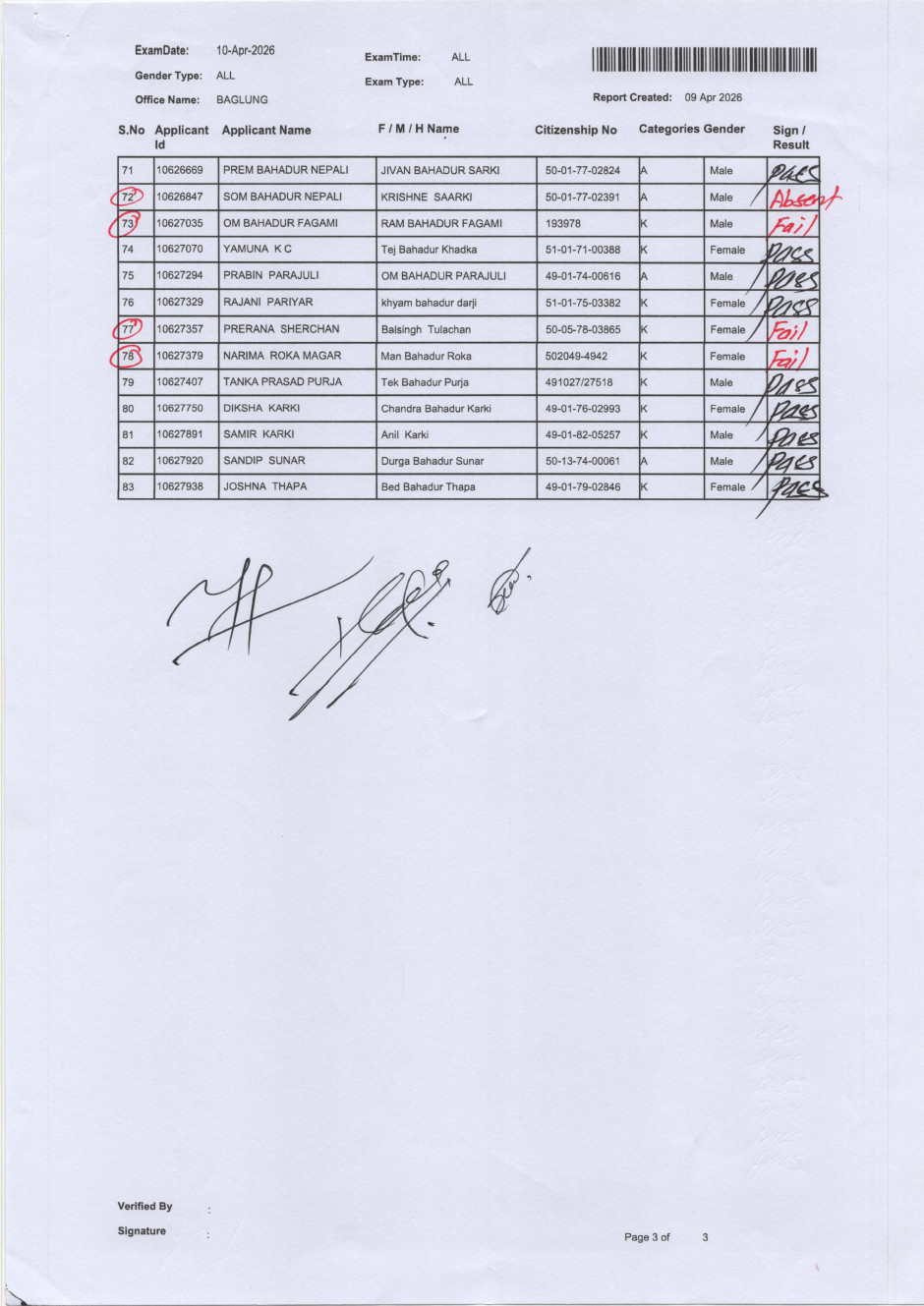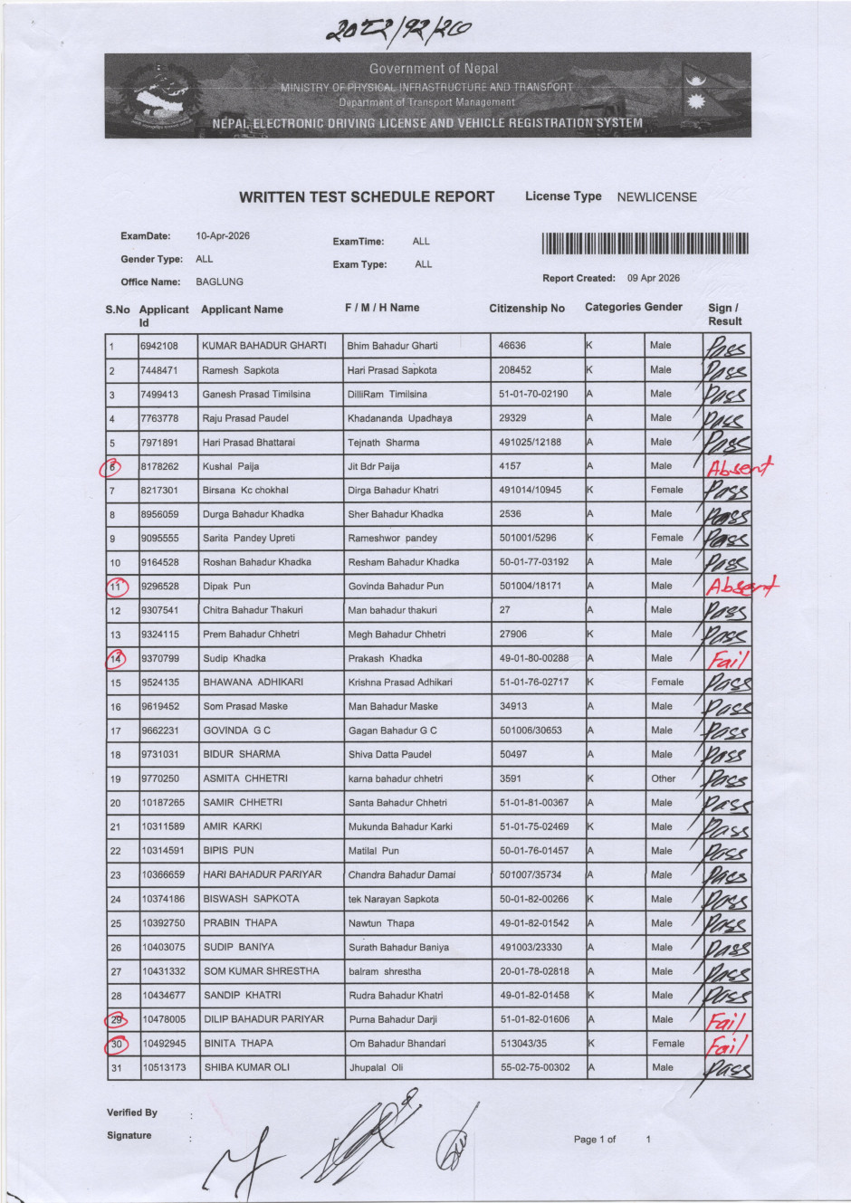 मिति २०८२/१२/२७ गते संचालन भएको सवारी चालक अनुमति पत्र वर्ग A/K तर्फको लिखित परीक्षाको नतिजा।