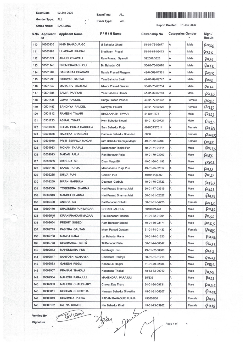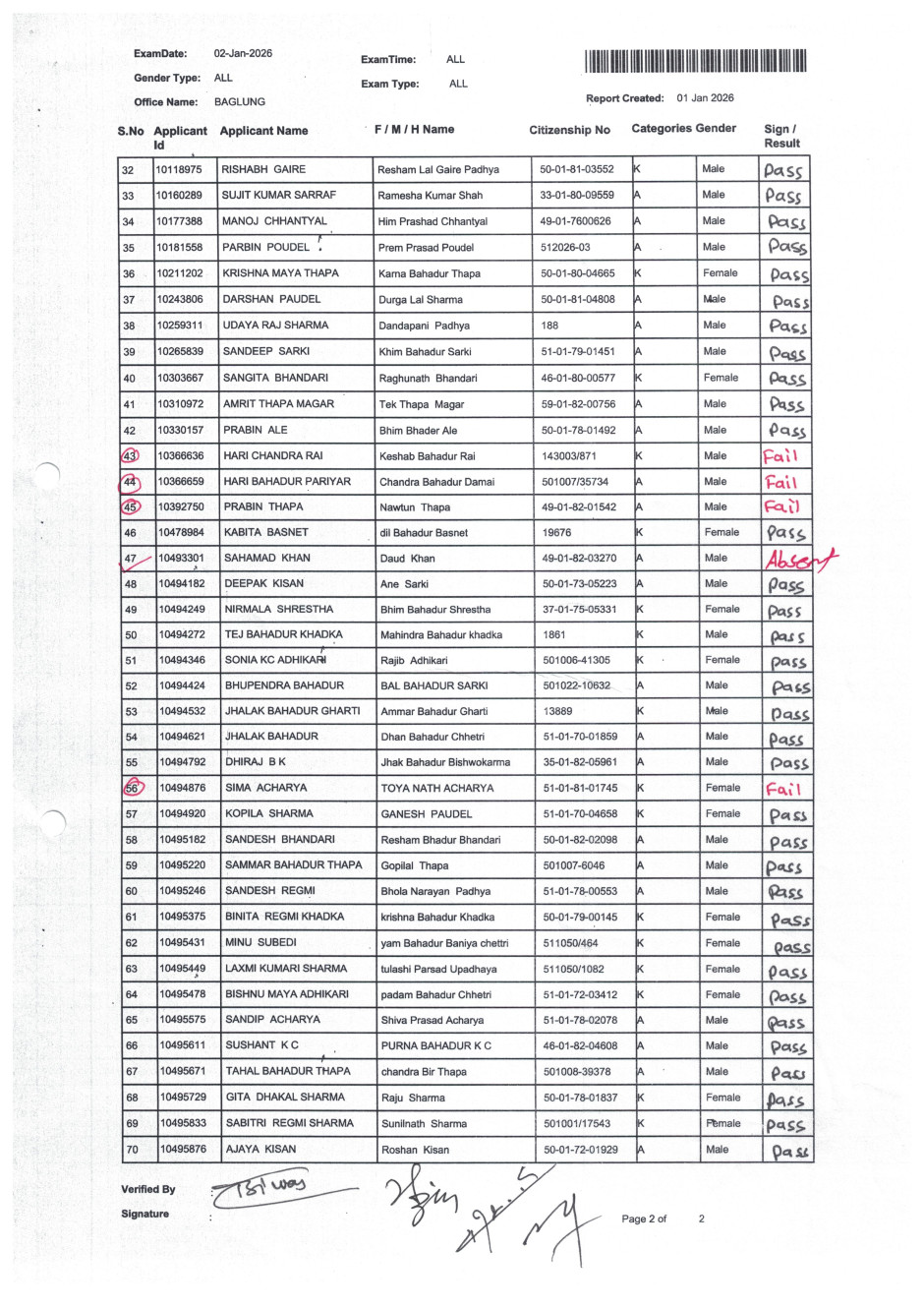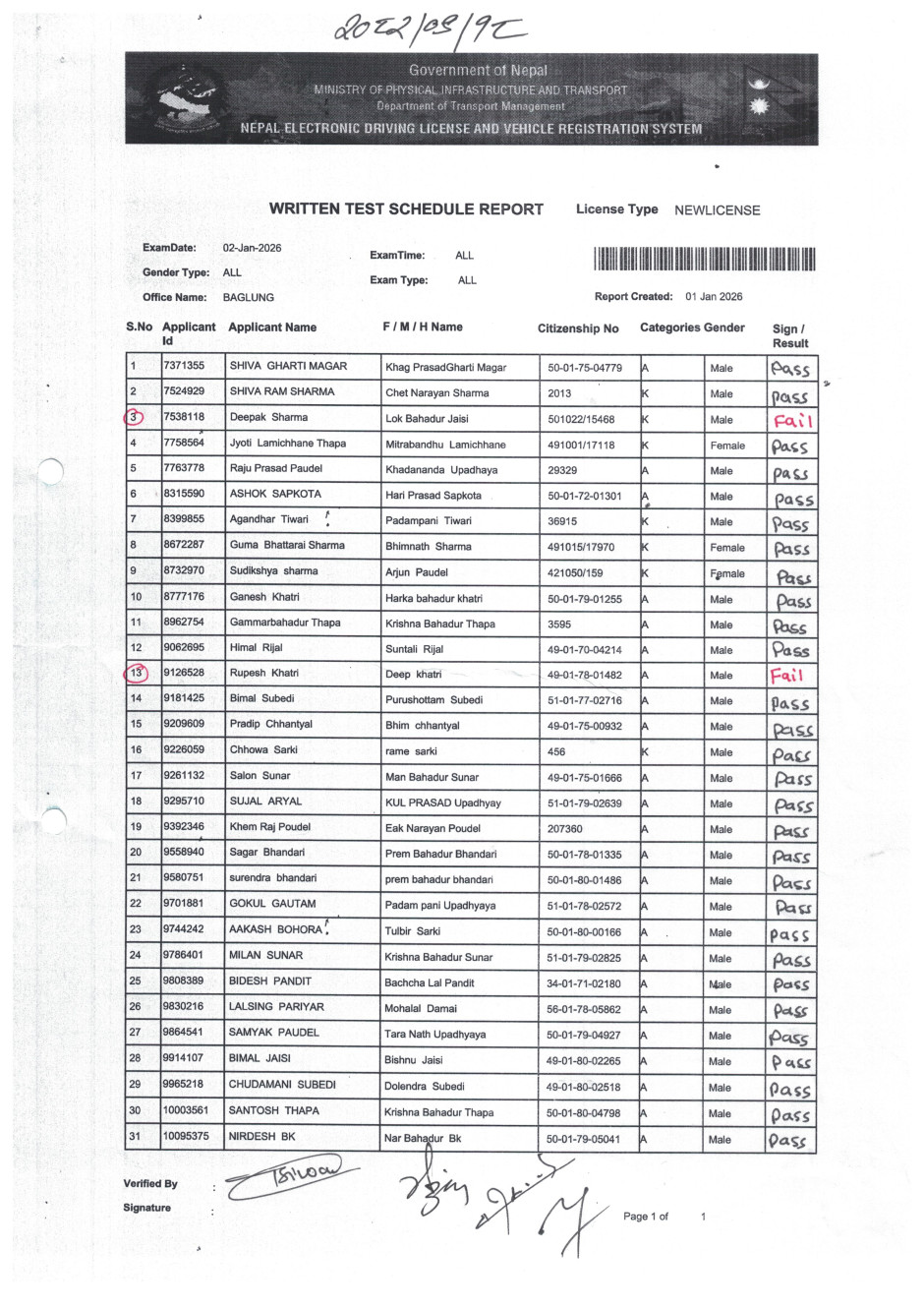 मिति २०८२/०९/१८ गते संचालन भएको सवारी चालक अनुमति पत्र वर्ग A/K तर्फको लिखित परीक्षाको नतिजा।