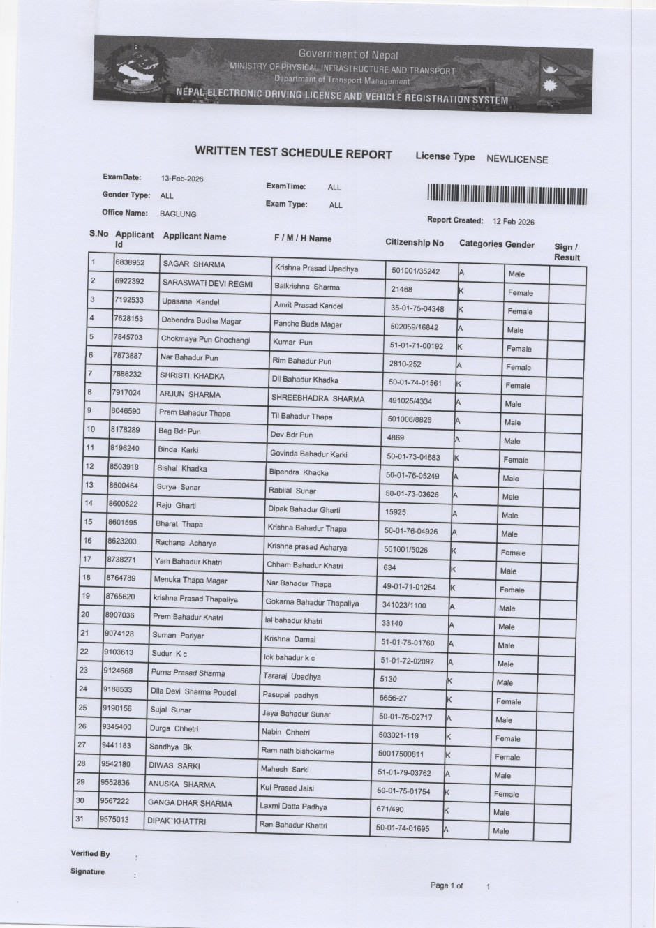 © सर्वाधिकार सुरक्षित यातायात व्यवस्था कार्यालय, बागलुङ