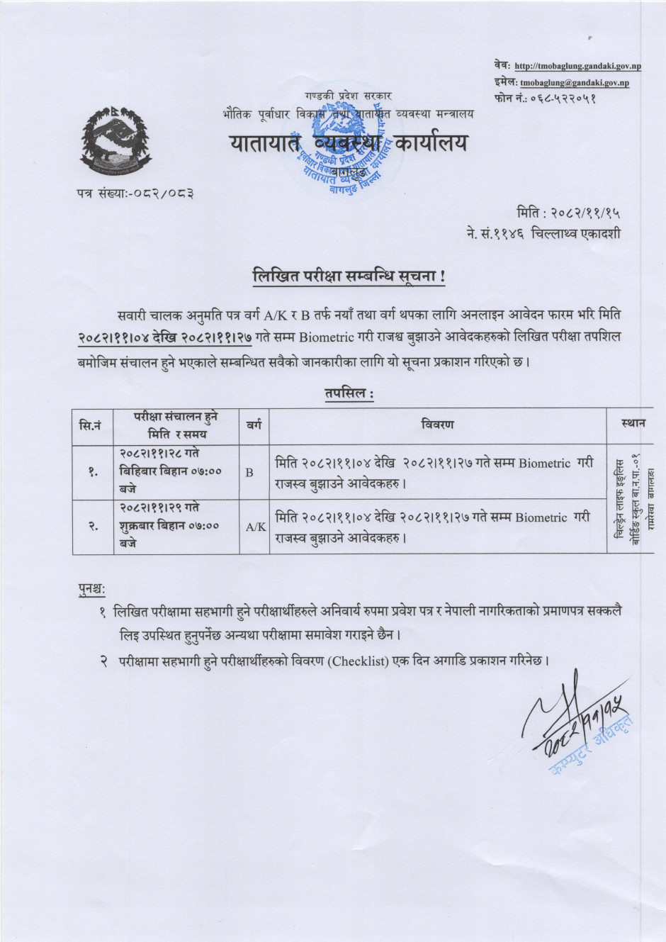 © सर्वाधिकार सुरक्षित यातायात व्यवस्था कार्यालय, बागलुङ