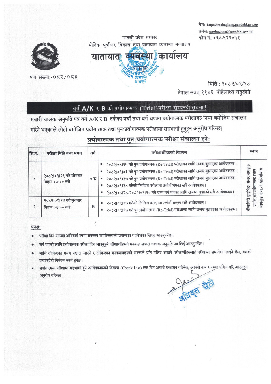 © सर्वाधिकार सुरक्षित यातायात व्यवस्था कार्यालय, बागलुङ