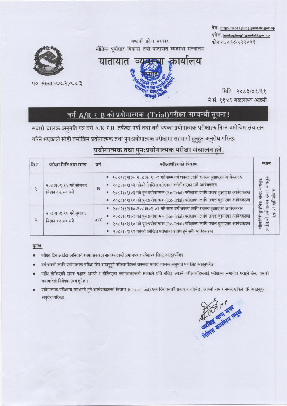 © सर्वाधिकार सुरक्षित यातायात व्यवस्था कार्यालय, बागलुङ