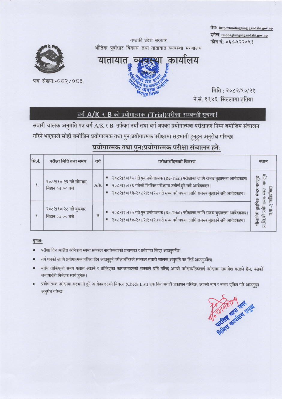 © सर्वाधिकार सुरक्षित यातायात व्यवस्था कार्यालय, बागलुङ