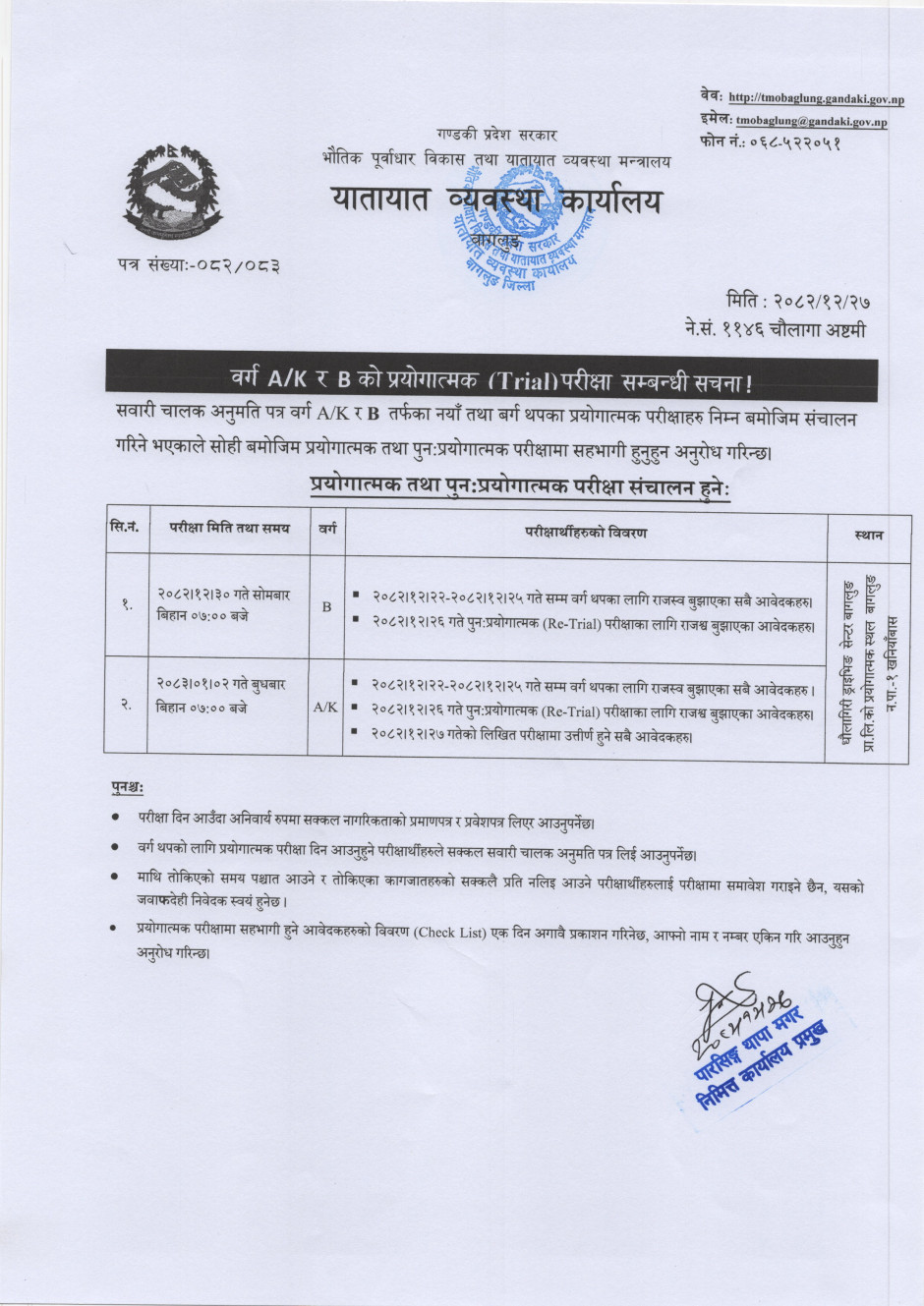 © सर्वाधिकार सुरक्षित यातायात व्यवस्था कार्यालय, बागलुङ
